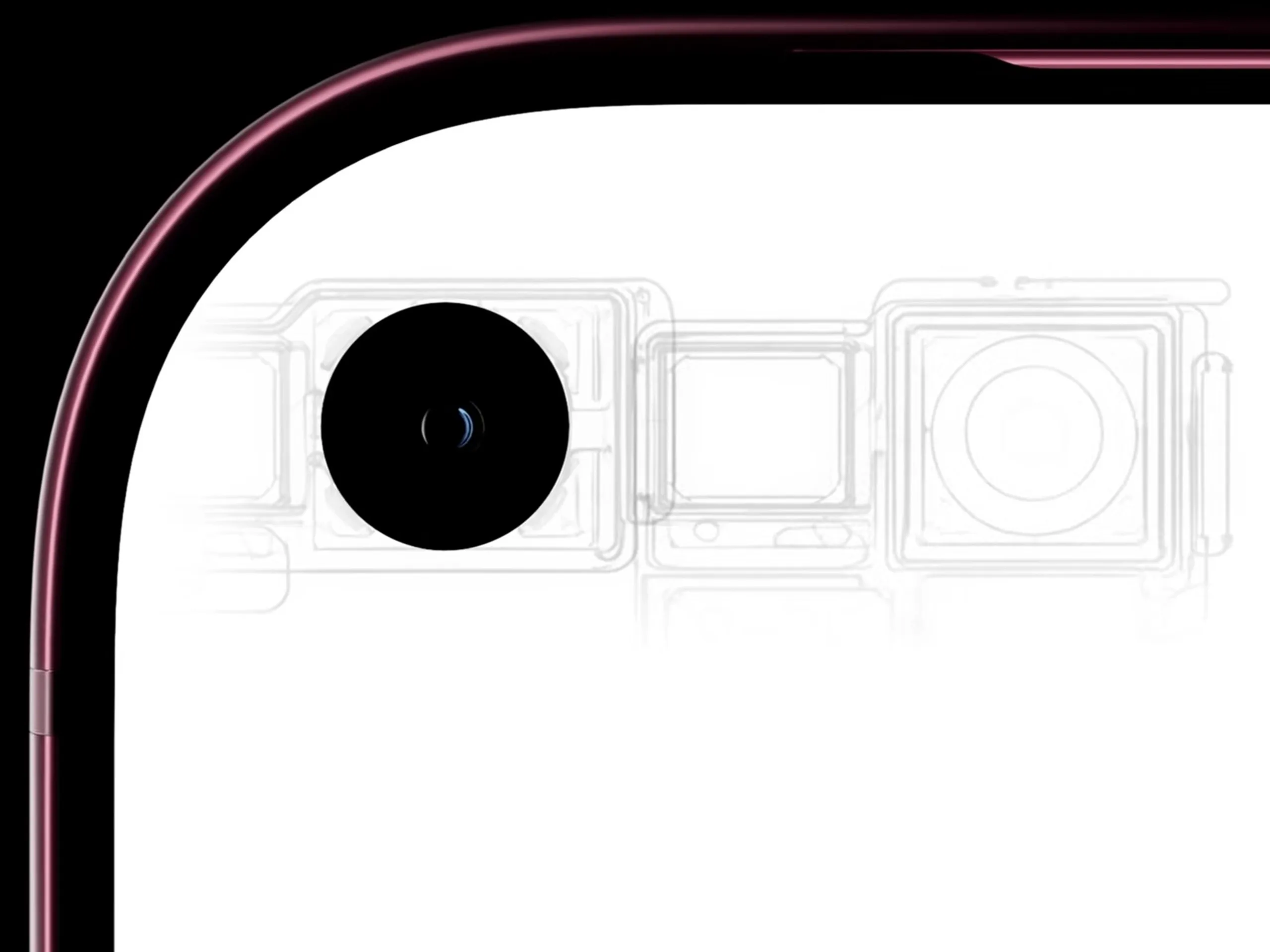 Medan Apple troligen kommer att använda Touch ID och en FaceTime-kamera med hål i båda skärmarna på iPhone Fold, kommer Apple att installera den design med hål i skärmen som är bekant från Android -telefoner i iPhone 18 Pro och iPhone 18 Pro Max genom att dölja Face ID-sensorerna osynligt under skärmen, vilket nyligen bekräftats av prototyper. Dynamic Island kommer att finnas kvar, men kommer att döljas i den betydligt mindre skärmutskärningen på vänster sida, vilket renderingarna nedan visar