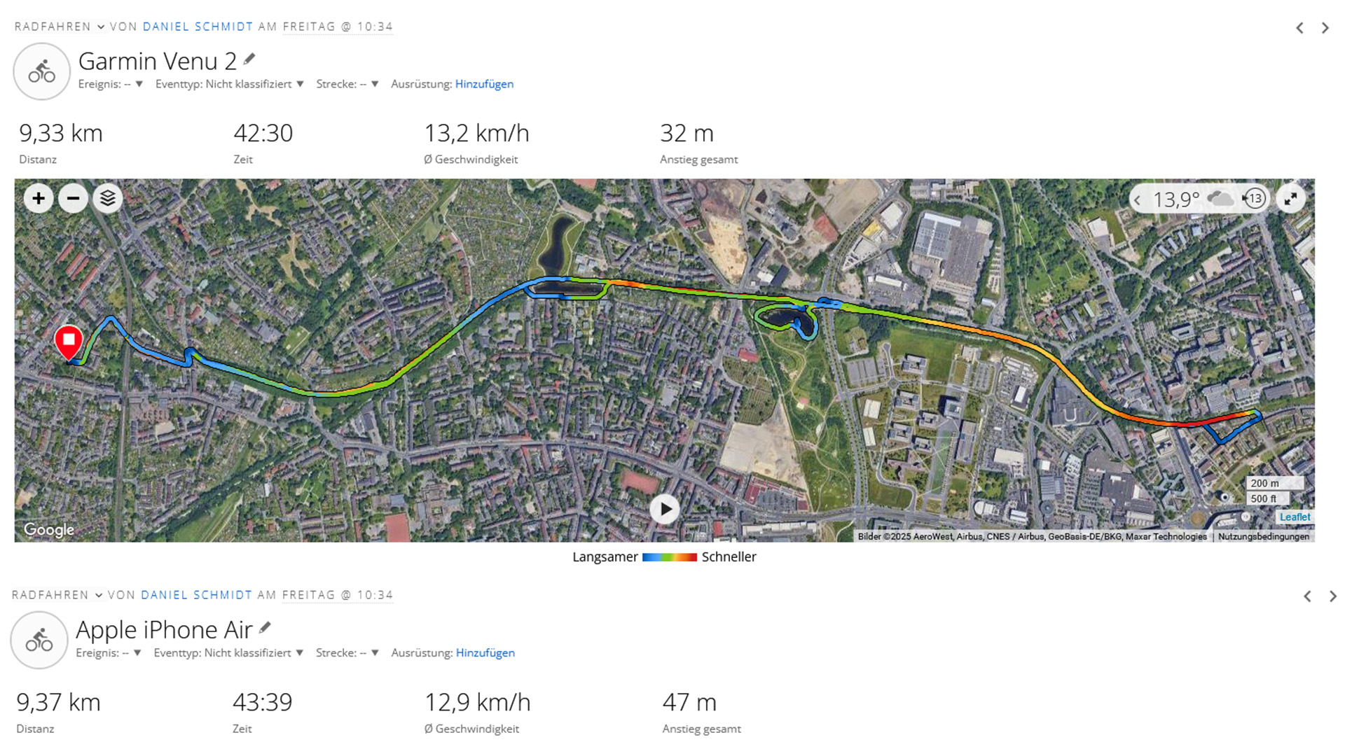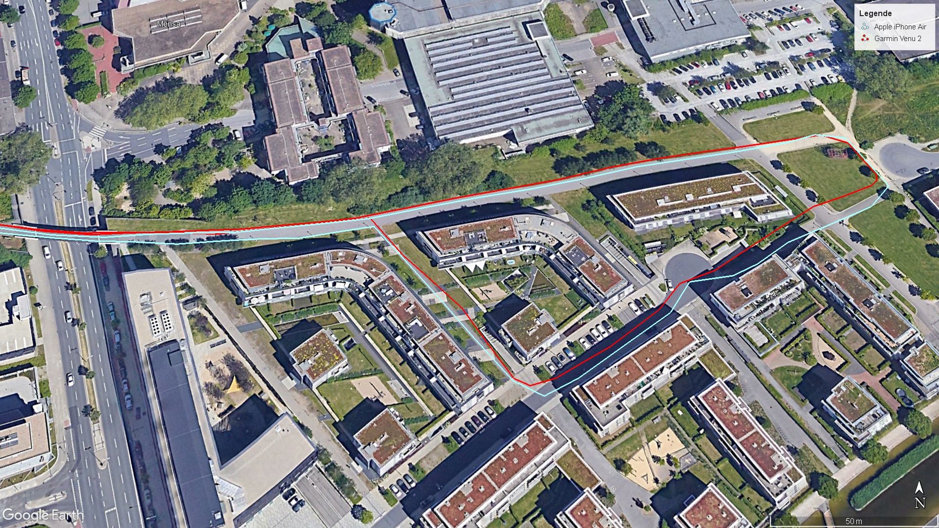 IPhone Air fastställer sin position med hjälp av dual-band GNSS med alla större satellitnätverk. Positionsbestämningen är ganska snabb, men i verkliga tester under en cykeltur visade det sig att smarttelefonen hämtade sin position med längre intervall, vilket innebar att ruttbestämningen inte alltid var exakt. Den är dock fortfarande helt tillräcklig för navigationsändamål.