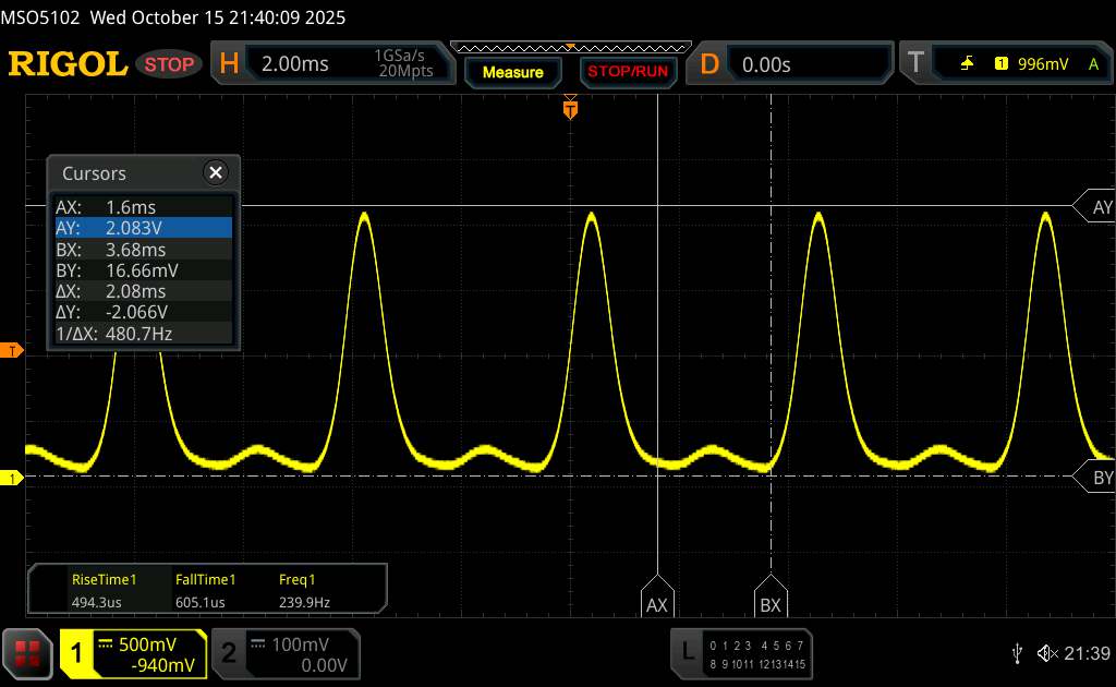 (+) | toppar är linjära (2.3% delta till föregående frekvens)