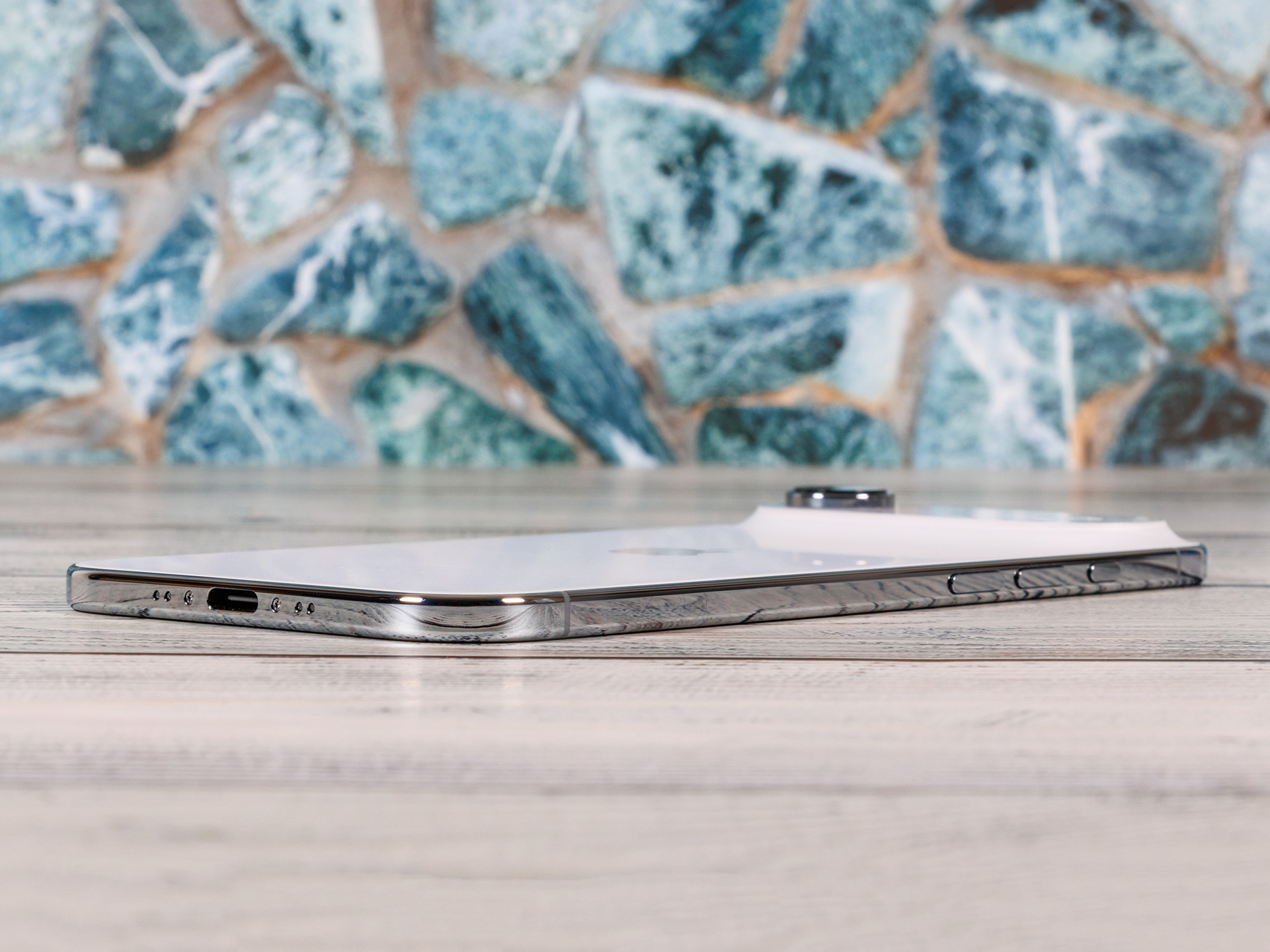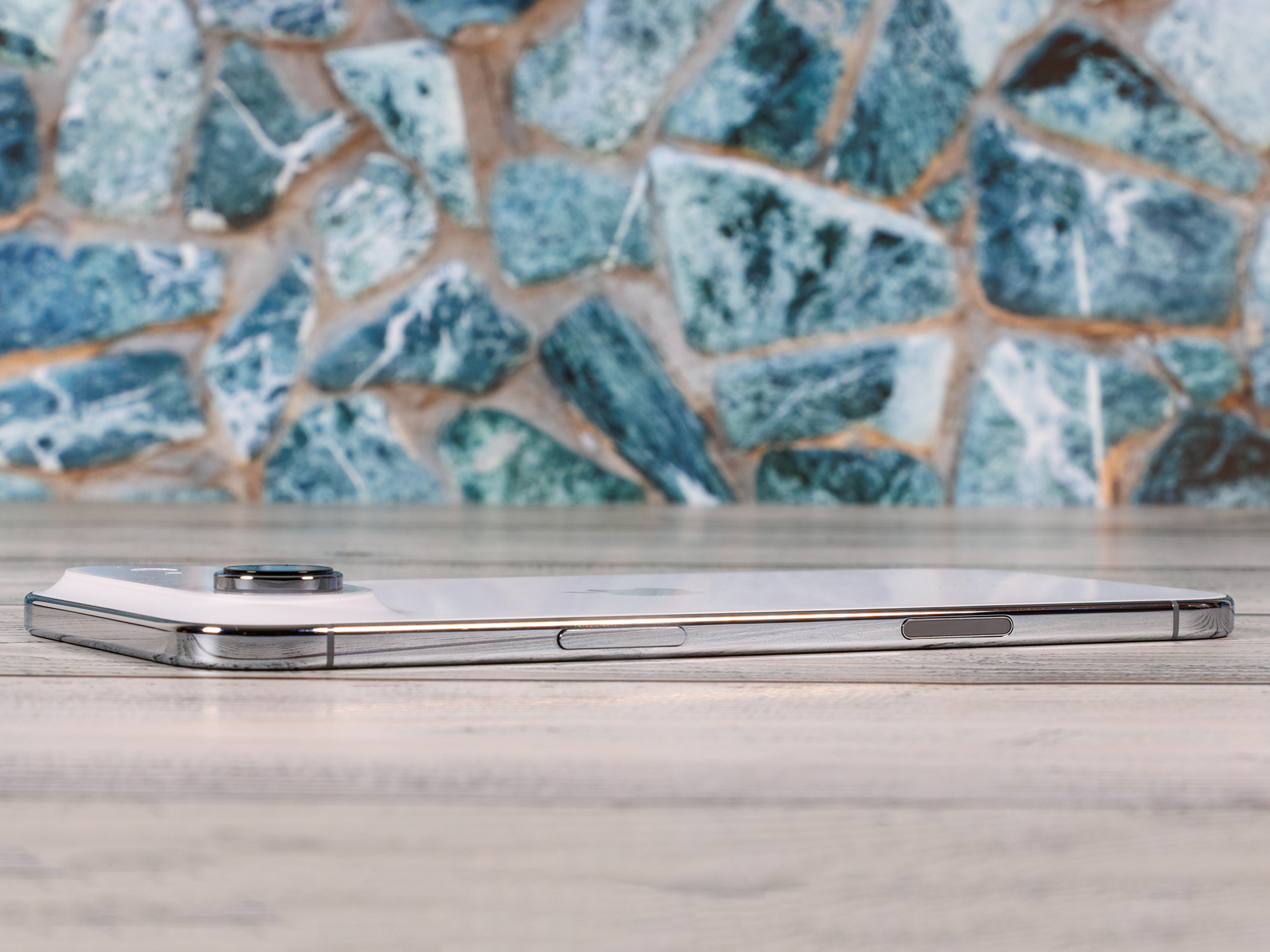 IPhone Air definieras av sin tunna design, vilket gör den till Apple's tunnaste smartphone hittills. Den har en nominell tjocklek på 5,64 mm, och detta är något vi kan bekräfta från våra mätningar. Lägg därtill en rejäl bump (+2,96 mm) och kameran monterad på ovansidan (ytterligare +2,7 mm), vilket resulterar i en tjocklek på 11,3 mm vid den tjockaste punkten. Med en vikt på 165 g är iPhone Air dock jämförelsevis lätt.
