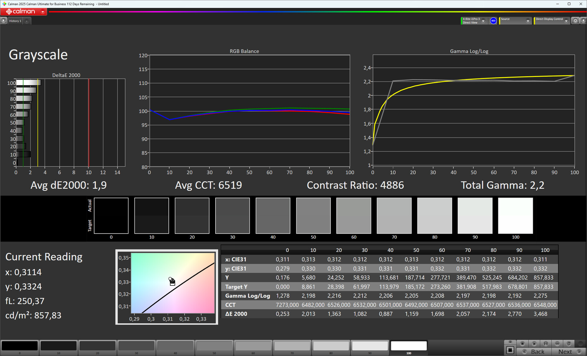 ΔE Greyscale Calman: 1.9 | ∀{0.09-98 Ø5}
