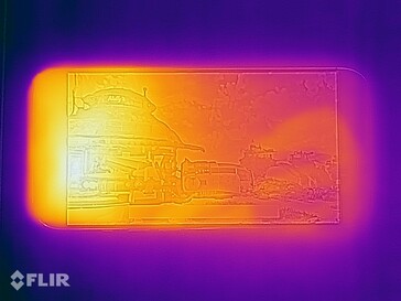 (±) Den maximala temperaturen på ovansidan är 41.5 °C / 107 F, jämfört med genomsnittet av 35.2 °C / 95 F , allt från 21.9 till 247 °C för klassen Smartphone.