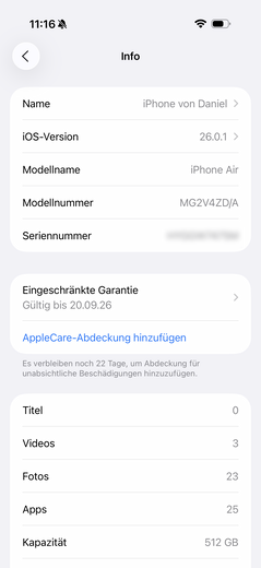 IPhone Air levereras med Apple iOS 26, vilket är identiskt med den version som finns på andra 2025 iPhones.