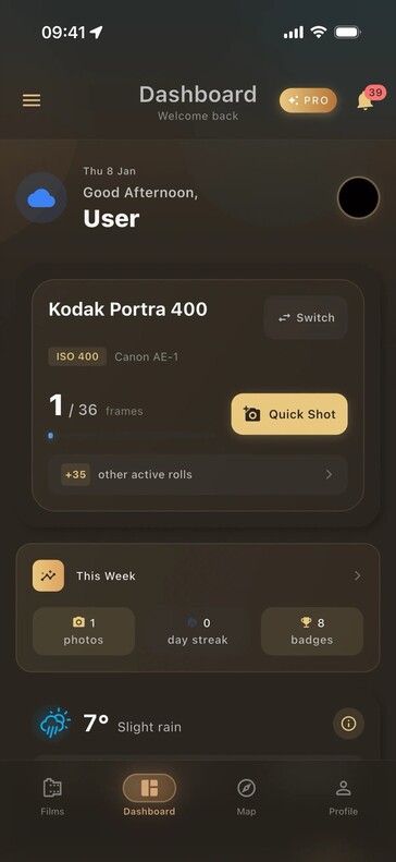 Appen gör det möjligt att hantera flera filmrullar på samma gång. Å ena sidan fungerar appen som en exponeringsmätare vid fotografering, vilket gör det lättare att välja rätt slutartid och bländare när man använder en äldre kamera utan inbyggd ljusmätare. Å andra sidan kan du också lägga till metadata, inklusive datum och tid samt information om aktuellt väder och GPS-koordinater. En beskrivning kan läggas till om så önskas