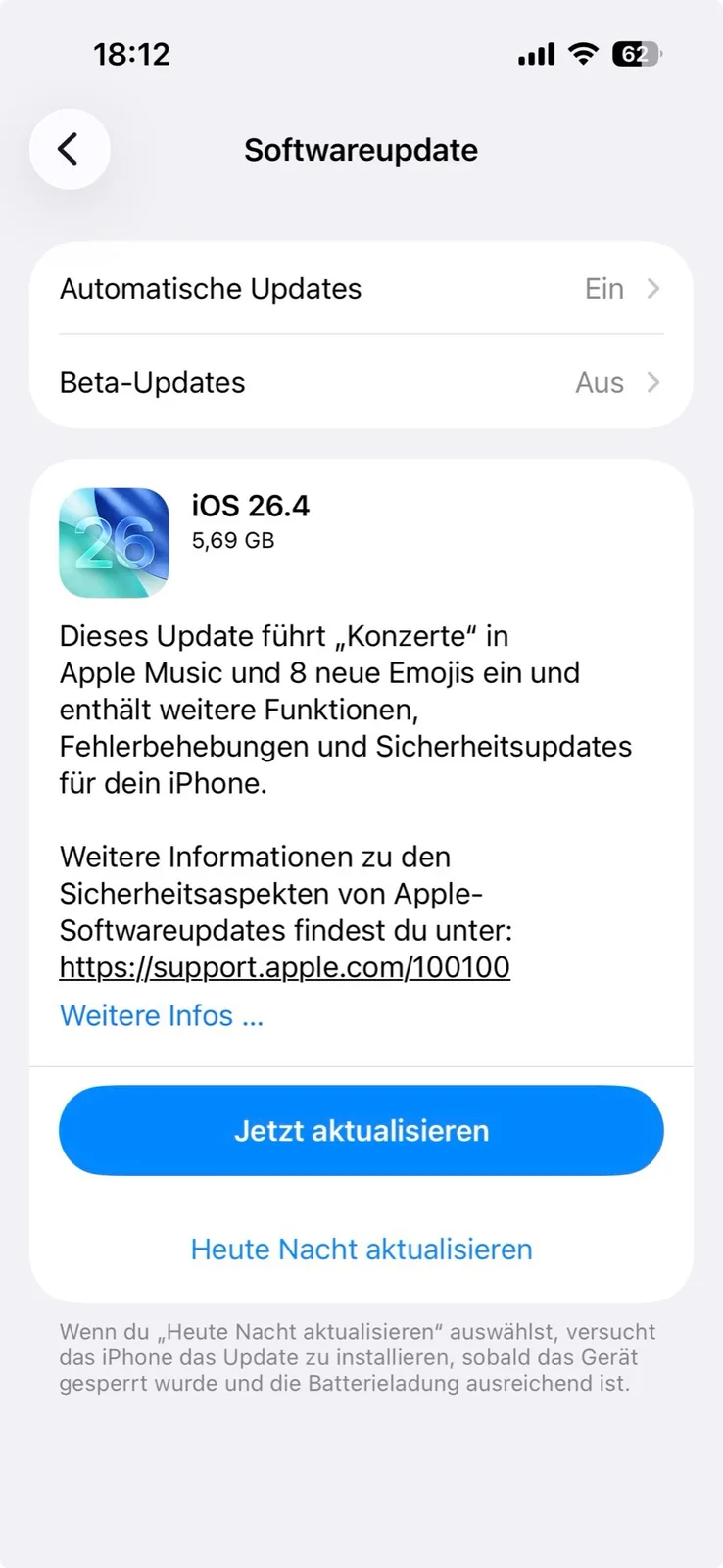 Apple har just släppt iOS 26.4. Uppdateringen av operativsystemet är tillgänglig för alla modeller från iPhone 11 till iPhone 17(799 $ på Amazon) och för andra generationens iPhone SE. Uppdateringen kan laddas ner och installeras som vanligt via systeminställningarna under Allmänt --> Programuppdatering.