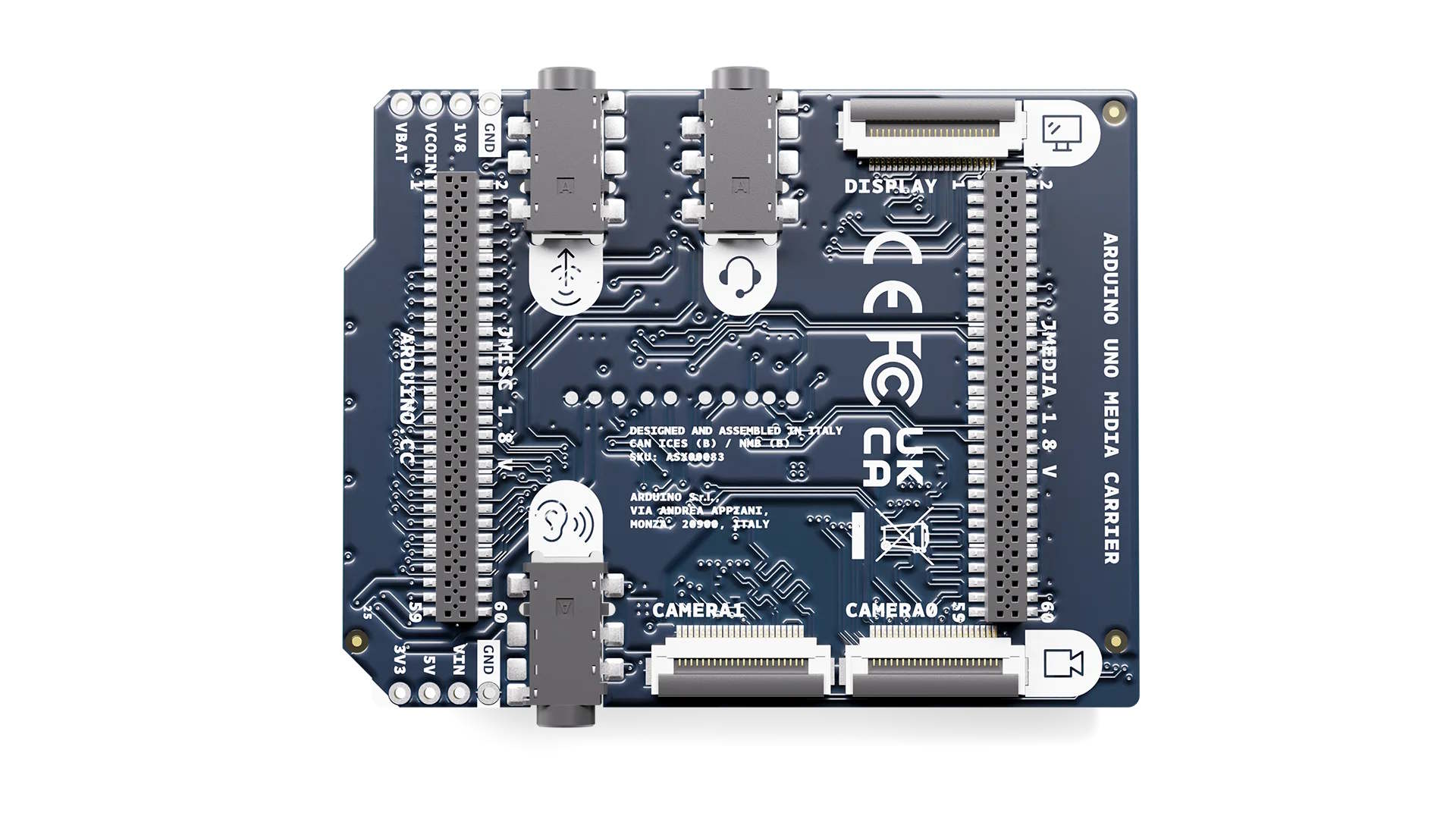 Det finns också ljudanslutningar för headset eller hörlurar, tillsammans med line-out för anslutning av högtalare. Detta är ett kombinerat 3,5 mm ljuduttag som ger både hörlursutgång och mikrofoningång. Dessutom finns det en kontakt vardera för en högtalare och en hörlur. Arduino listar redan UNO Media Carrier för $19,25och den förväntas lanseras inom kort. Arduino har dock ännu inte lämnat några specifika tillgänglighetsdetaljer.