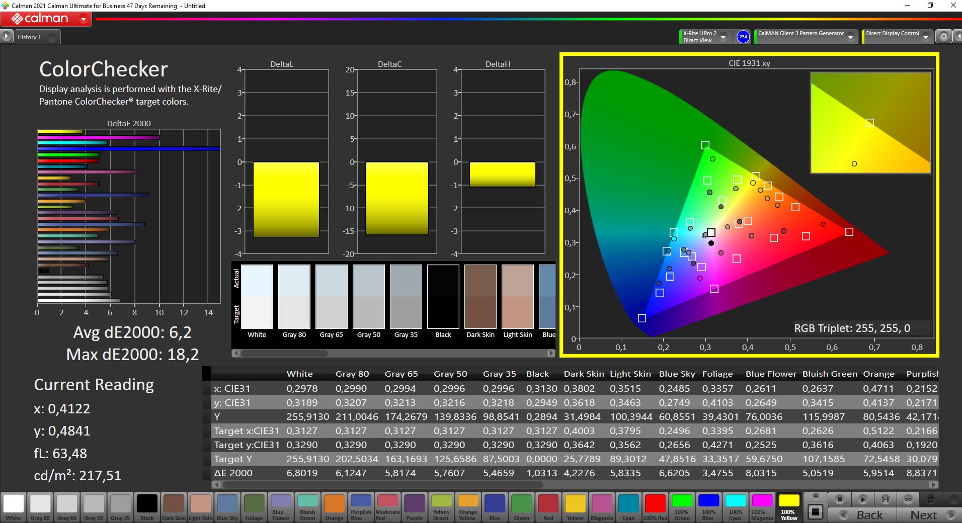 ΔE ColorChecker Calman: 6.2 | ∀{0.5-29.43 Ø4.78}