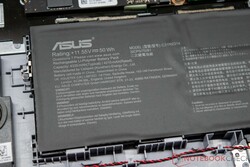 Asus ExpertBook P1 har bara ett relativt litet batteri med en kapacitet på 50 Wh. Detta räckte för att förse enheten med ström i drygt 6 timmar under vårt WLAN-test. Under belastning varade kraftlagringen bara i knappt 2 timmar. En full laddning tog ungefär lika lång tid, med 80-procentsmarkeringen uppnådd efter halva tiden.