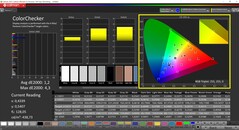 Vi fastställer en genomsnittlig ljusstyrka på 455 nits i kombination med ett något förhöjt svartvärde på 0,4, vilket resulterar i ett kontrastförhållande på 1160:1. Detta är ett hyfsat resultat, men alla IPS-baserade rivaler (inklusive föregångaren) utom denRazer Blade 14erbjuder bättre kontrastresultat. Panelens ljusstyrka kan inte styras via omgivande ljussensor.