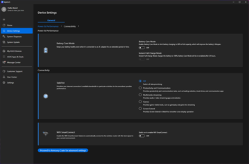 Armory Crate gör det möjligt att växla mellan bakgrundsbelysning med en eller flera zoner. Det förstnämnda är standardläget och ger en jämnare belysning för färgkorrekta arbetsflöden.