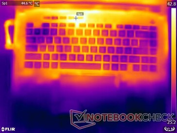 Asus kylningsjusteringar gör att Scar 16 kan använda sig av en kombinerad 180 W från både CPU och GPU under belastning. Men att pressa den bärbara datorn så här långt resulterar oundvikligen i höga yttemperaturer och fläktljud.