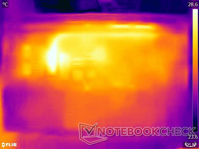 (-) Medeltemperaturen för handledsstödsområdet på liknande enheter var 28.7 °C / 83.7 F (-2.9 °C / -5.2 F).