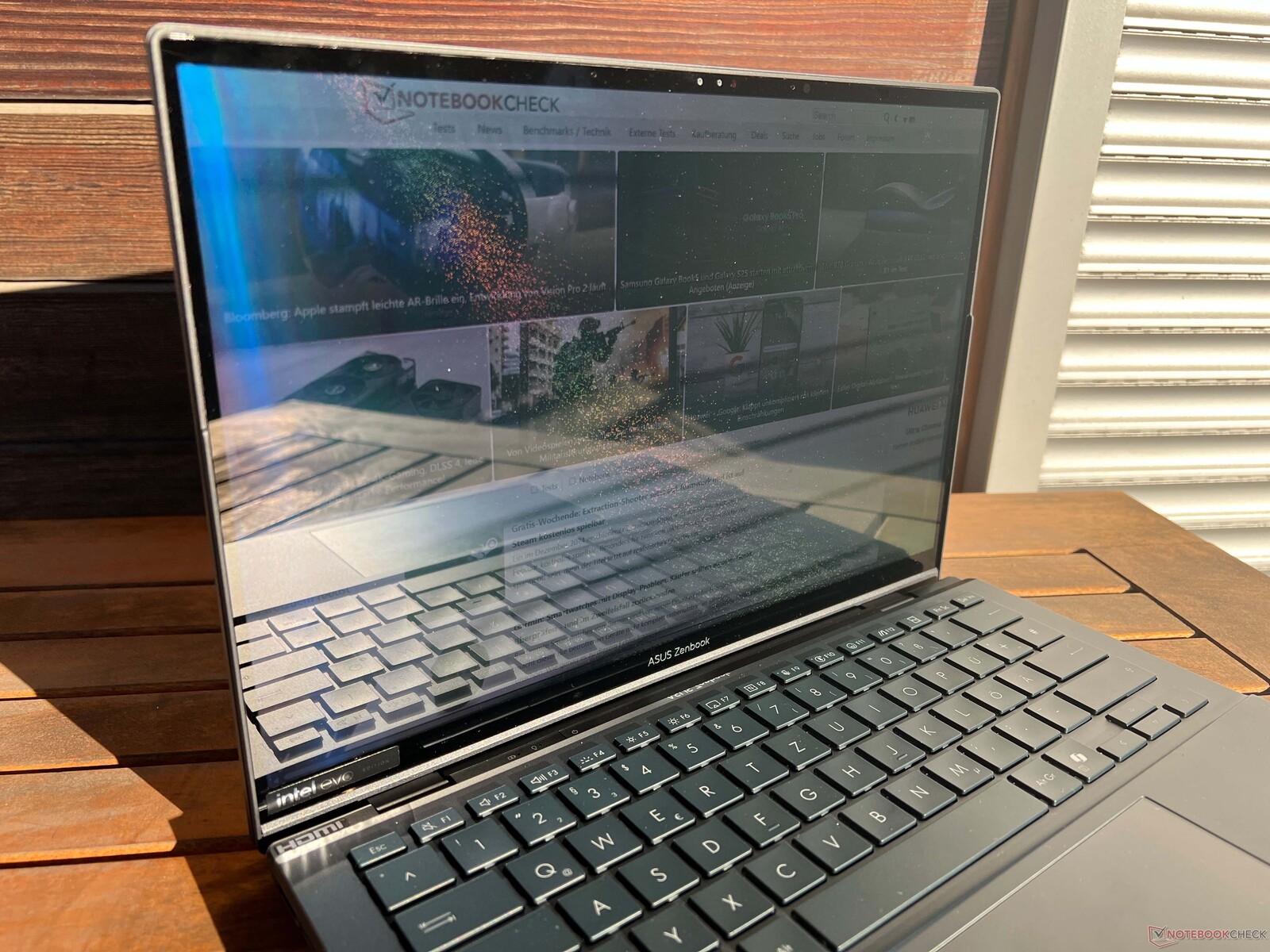 Zenbook Duo är utrustad med två identiska 14-tums OLED-paneler, vilket är anledningen till att det är möjligt att arbeta med båda skärmarna utan problem (identisk bildkvalitet, inga skalningsproblem när du flyttar fönster). Förra årets testenhet hade två högupplösta OLED-skärmar med en upplösning på 2,8K och en frekvens på 120 Hz, medan vår nuvarande testkonfiguration har två full-HD OLED-skärmar vid 60 Hz. Bortsett från detta är de andra funktionerna desamma. Skärmarnas ljusstyrka kan justeras automatiskt via en sensor, men det kan inte färgtemperaturen.