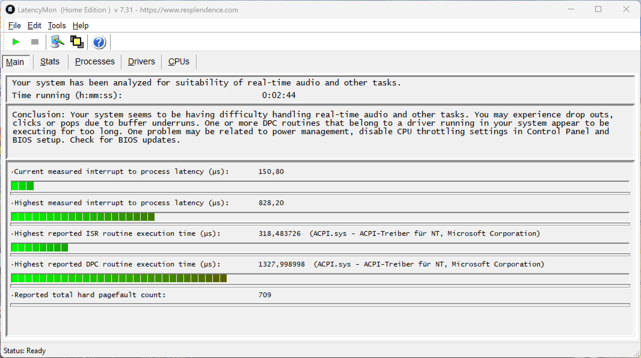 (+) | det totala ljudet är linjärt (9.7% skillnad mot median)