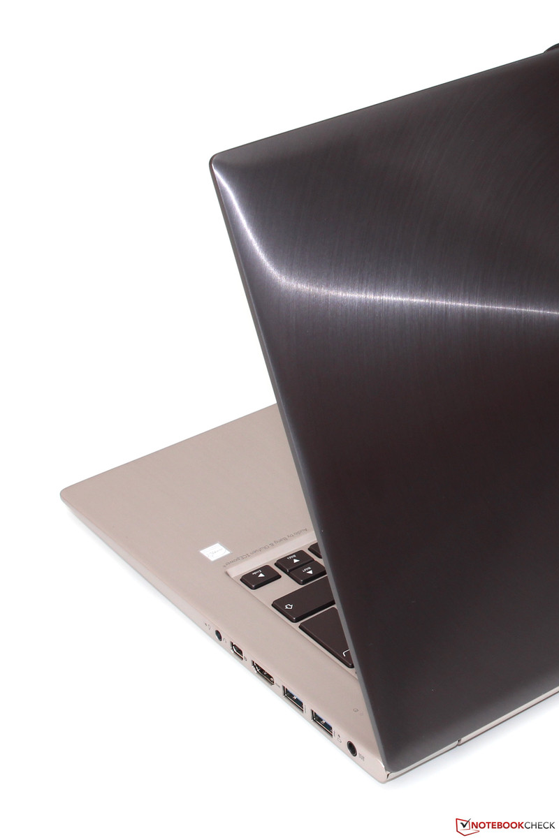 Bland annat uppskattade vi det trevliga och mycket robusta aluminiumchassit som rymmer många kraftfulla komponenter. Många konkurrenter använder en Core i5-processor och 8 GB minne, men nya GeForce 840 är en unik funktion i Zenbook. Tack vare Maxwellarkitekturen är det här grafikkortet inte bara snabbare än sin Keplerbaserade föregångare, utan förbrukar även mycket mindre ström. Detta möjliggör en tyst kylningslösning utan att hårdvaran når kritiska temperaturer.