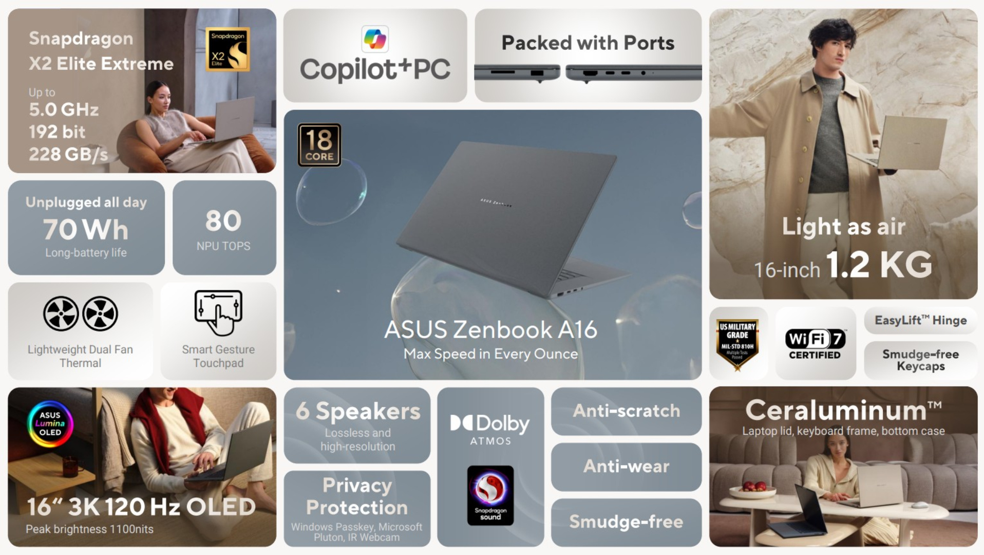 Medan fokus fortfarande ligger på den bärbara datorns lansering i USA, har Asus tyst börjat sälja Zenbook A16 internationellt också. Till exempel kan den bärbara datorn redan köpas i Australien, Eurozonen och Storbritannien. För närvarande har alla varianter en Snapdragon X2 Elite X2E-94-100 chipset, 48 GB RAM och en 1 TB SSD.