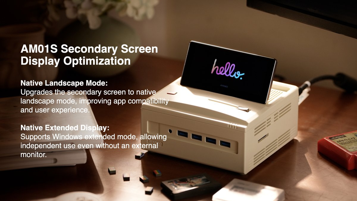Däremot har lite annat förändrats med AMO1S från dess första debut för nästan ett år sedan. Till exempel fortsätter Ayaneo att utrusta mini-PC: n med en 4-tums skärm för att fungera som en sekundär bildskärm, som de nu hävdar är en inbyggd landskapspanel. På samma sätt behåller AM01S den klassiska Macintosh-estetiken som Ayaneo har erbjudit över sina andra mini-PC: er. Prissättning och tillgänglighet förblir dock ett mysterium i detta skede.
