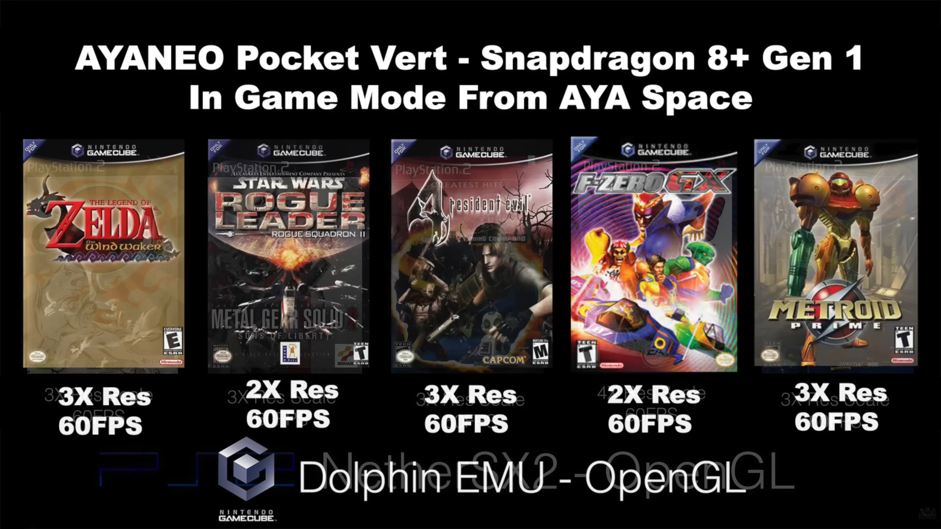 Qualcomm Snapdragon 8+ Gen 1 är mångdubbelt kraftfullare än vad en uppgraderad Game Boy Advance skulle kunna uppbåda och kan till och med spela GameCube- och PlayStation 2-spel i mycket högre upplösning än vad de ursprungliga konsolerna kunde. Med detta kraftfulla Android -chipset ombord blir Ayaneo Pocket VERT ett ganska övertygande alternativ för handhållna spel i allmänhet, inte bara en 2D-bunden emuleringsmaskin. Med hjälp av Play Store bör spel från Android kunna spelas med bra framerate, och Steam Link eller molnstreaming gör även moderna konsol/PC-spel till en möjlighet i den här formfaktorn.