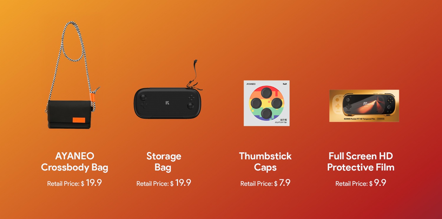 Medan $ 15-kupongen gäller för förbeställningar av Snapdragon G3 Gen 3 och Snapdragon 8 Elite versionerna av Konkr Pocket, de som backade upp Pocket Fit Elite (Snapdragon 8 Elite-versionen), kommer att få ett presentpaket utöver kupongen. Presentförpackningen innehåller en Pocket Fit förvaringsväska värd $19.99, thumbstick caps värda $7.99, en Ayaneo crossbody väska värd $19.99, och en full screen HD skyddsfilm värd $9.99.
