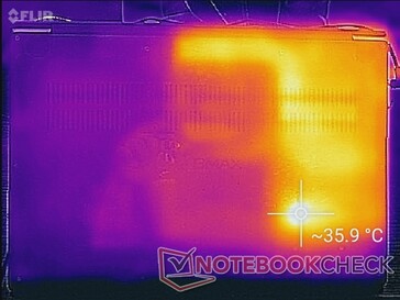 Den vänstra halvan av den bärbara datorn kommer alltid att vara varmare än den högra eftersom processorn, SSD- och RAM-modulerna är koncentrerade på en sida av systemet. Temperaturskillnaden mellan de två sidorna av chassit kan vara potentiellt obehaglig för vissa användare. När man kör högre belastning under längre perioder kan till exempel vänster handflatsstöd bli så varmt som 45 C jämfört med endast 30 C på höger handflatsstöd. De flesta andra Ultrabooks har inte det här problemet eftersom deras processorer och värmerör nästan alltid är placerade mot baksidan av chassit istället.