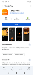 Den första installationen innebär att man skannar en QR-kod med en smartphone. Då kommer användaren till en enkel sida med två länkar till appbutiken, en för iOS och en för Android. En prisvärd Motorola-telefon som kör Android 14 användes för att utföra tester; Doogee Fit-appen fungerar helt fint på den. Observera att appen kräver en hel del behörigheter för att de flesta av dess funktioner ska fungera korrekt.