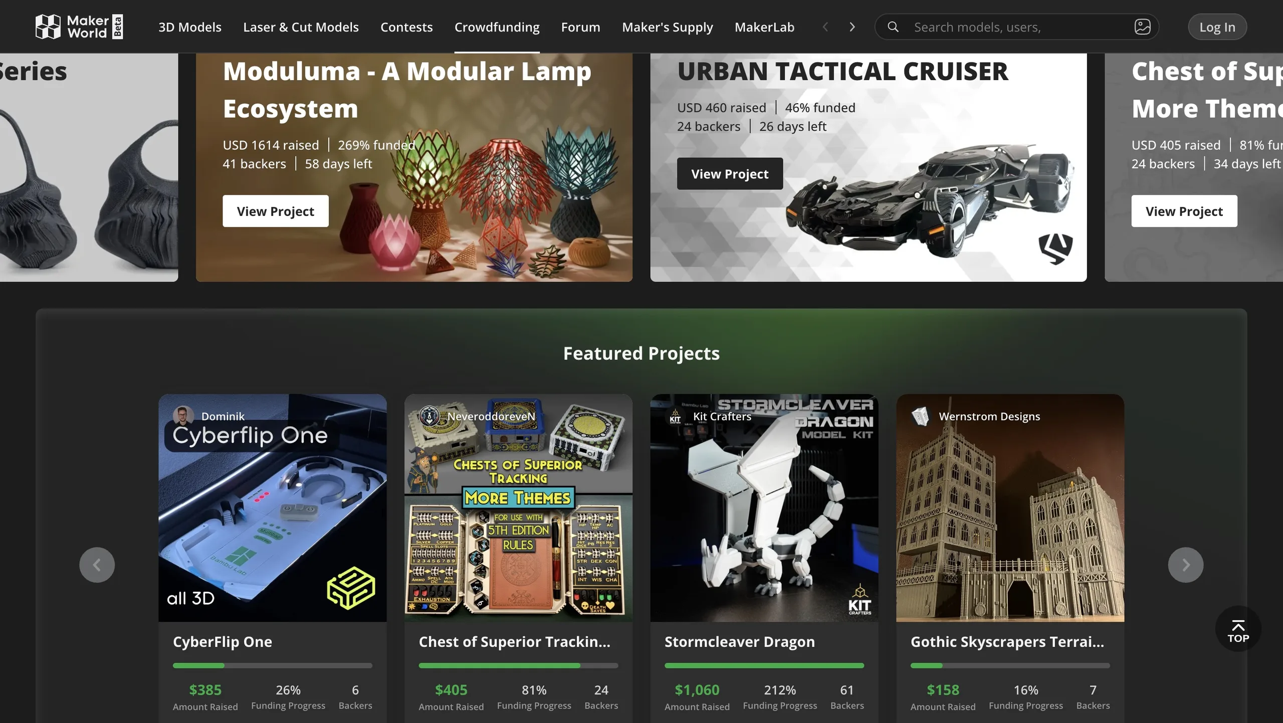 Plattformen är i princip som en Kickstarter för 3D-printing-communityn. Skaparna kan skicka in ett detaljerat förslag som beskriver deras idé och visualiserar den genom renderingar, definierar mål och en tidslinje på 30, 45 eller 60 dagar, samt differentierade belöningar som exklusiva STL-filer, handledning, DIY-kit och anpassade 3D-utskrifter. När en kampanj går live kan de också dela uppdateringar och svara på kommentarer från intresserade användare.