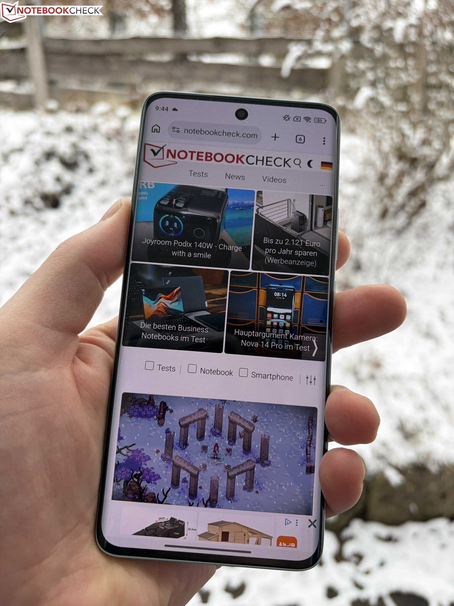 Tack vare den höga ljusstyrkan är Poco M8 väl utrustad för utomhusbruk. I testet gör det dock ingen skillnad om vi aktiverar solljusläget eller inte. Detta skulle faktiskt ge en ökad ljusstyrka, men det ändrar inte skärmens ljusstyrka.