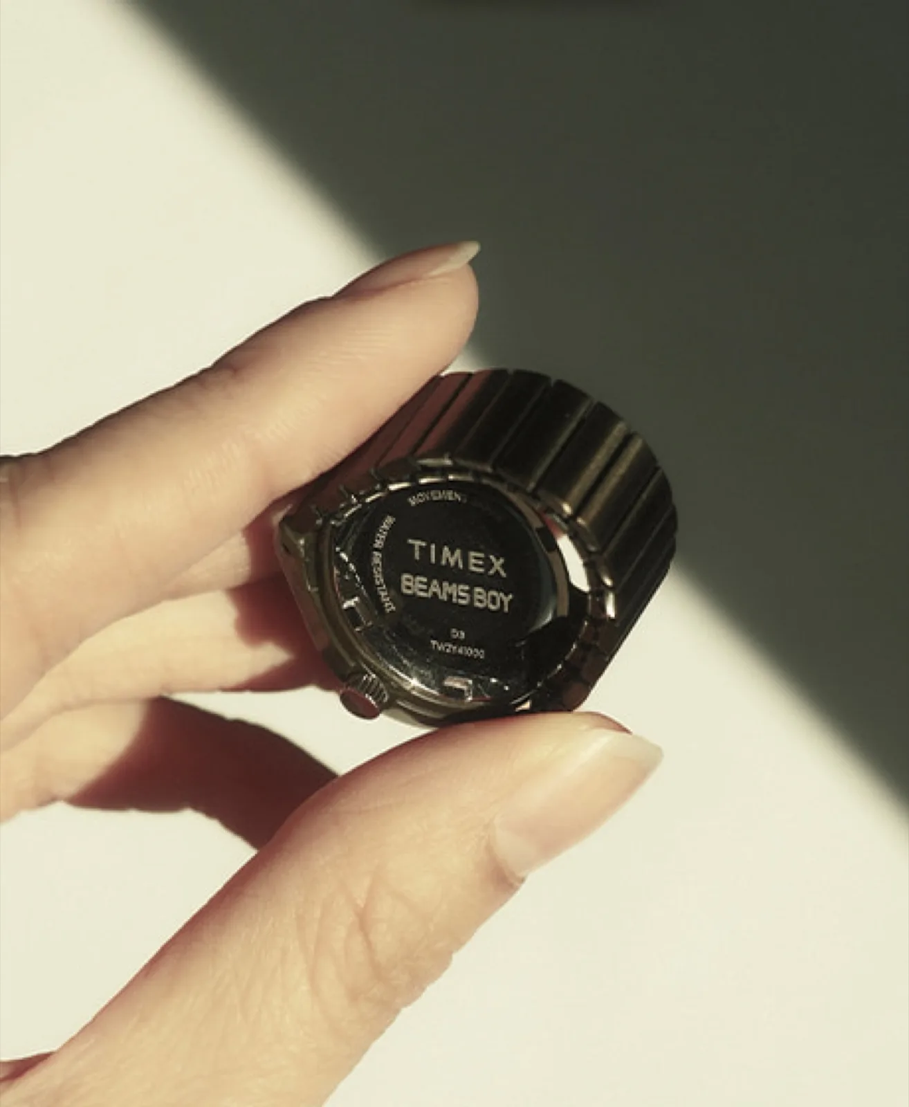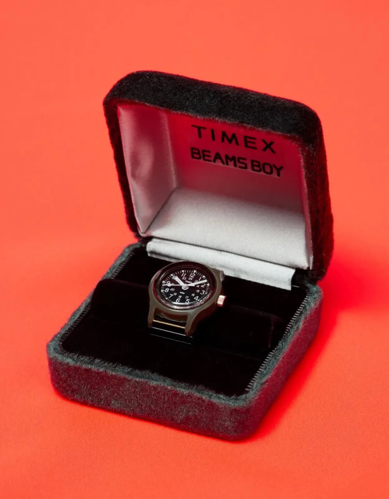Detta beror på att den är tillverkad av rostfritt stål och att de enskilda elementen är förbundna med ett stretchigt band. Ringklockan bör därför passa fingrar som vanligtvis bär en ring i amerikansk ringstorlek 9-15. Det är dock inte möjligt att ta bort en länk på armbandet för att göra den lämplig för ännu mindre fingrar. Timex x Beams Boy Ring Watch kommer att lanseras i april för att fira 50-årsjubileet av den första Beams-butiken i Harajuku, Japan.