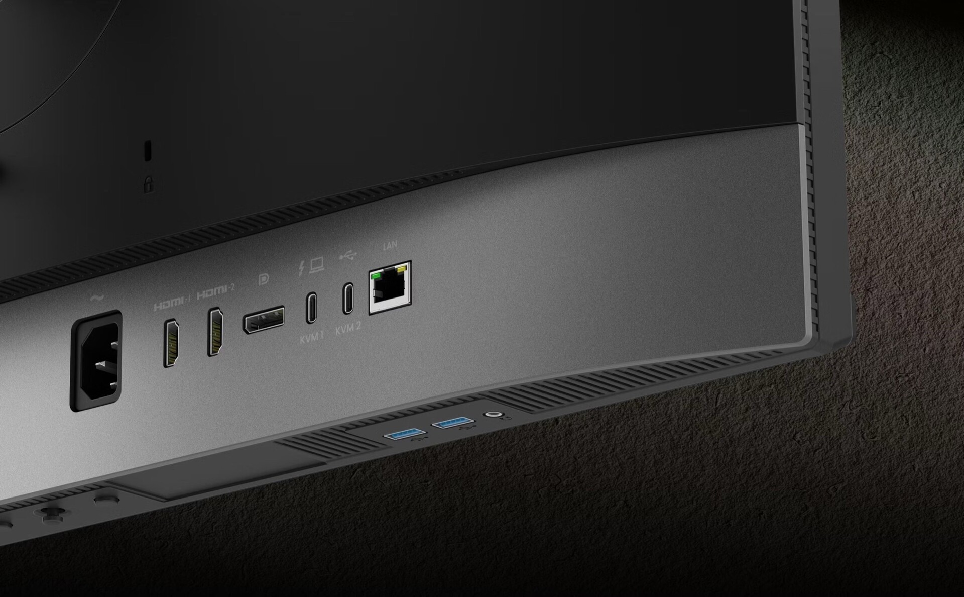 Skärmen har stöd för Thunderbolt 4 och kan ladda bärbara datorer anslutna via USB-C med 96 watt. En integrerad KVM-switch, en USB-hubb med två portar, två HDMI-portar, DisplayPort, Ethernet och ett höjdjusterbart stativ kompletterar funktionerna.