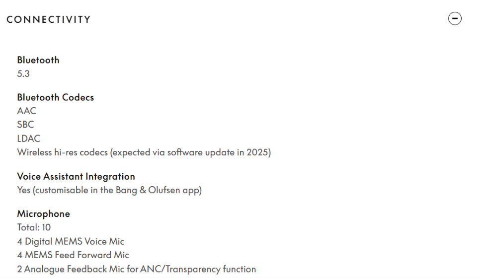 På samma sätt uppdaterade företaget sitt produktblad för att utelämna löftet om att lägga till 3-enheters multipoint-anslutning via en programuppdatering även i år. Därför skulle vi inte bli förvånade om Bang & Olufsen i tysthet släpper detta åtagande snart också utan att förtydliga ytterligare.