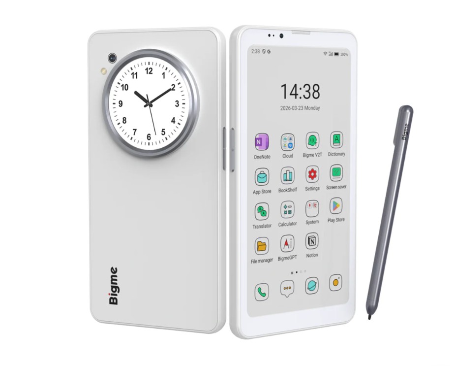 Smarttelefonen är utrustad med en 6,13-tums E Ink-färgskärm med en 300 PPI-upplösning i svartvitt läge och en 150 PPI-upplösning för färg. Å andra sidan är LCD-panelen på baksidan en 1,85-tums skärm med en 360 × 360-upplösning. Bigme säger att den sekundära skärmen fungerar som ett snabbt överblickbart nav som kan användas för att kontrollera meddelanden eller som sökare när du tar bilder.