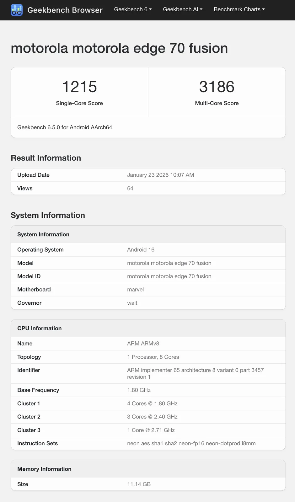 Nu stödjer två Geekbench-listor idén att Motorola snart kommer att ersätta Edge 60 Fusion (curr. $379 på Amazon) med en direkt efterföljare. Båda listorna tyder dock på att Motorola har utrustat Edge 70 Fusion med ett nyare chipset än Snapdragon 7s Gen 3 som nämns i Blass senaste tweet. Specifikt identifierar klockhastigheten på 2,71 GHz på chipsetets kluster 3 chipsetet som Snapdragon 7s Gen 4 snarare än dess föregångare.