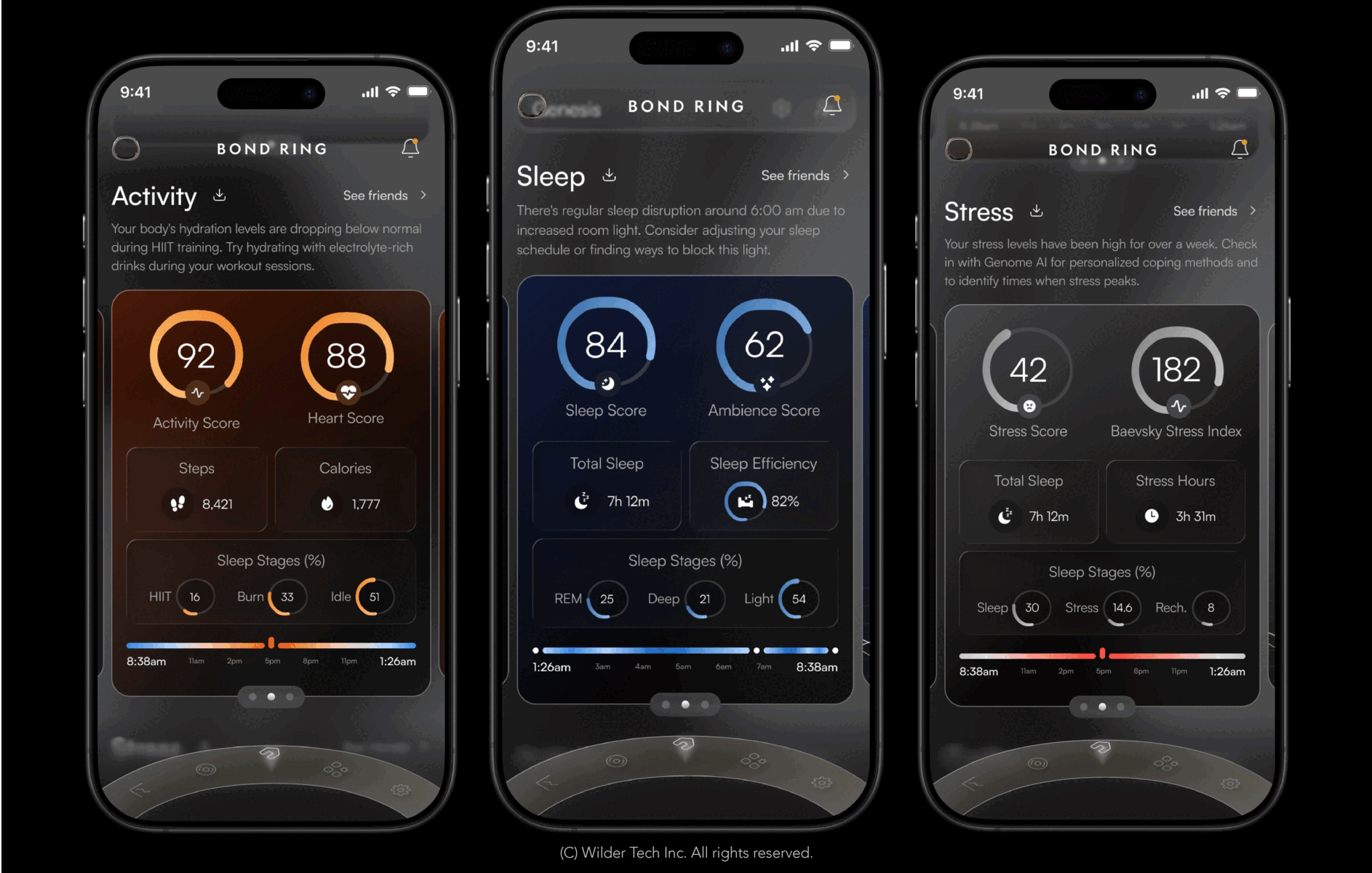 Det stora antalet sensorer som påstås vara integrerade i ringen väcker också farhågor. Företaget hävdar att Bond Ring kan spela in EKG och mäta blodtryckstrender, kroppstemperatur, puls, syremättnad (SpO2), hjärtfrekvensvariabilitet (HRV) och maximal syreupptagning (VO2 max). Den påstås också mäta kroppssammansättningen, dvs. kroppsfett, muskler, skelettmassa och vattenretention. Detta är bara de interna sensorerna, eftersom den lilla ringen också sägs ha sensorer för UV-exponering, omgivningstemperatur, ljusintensitet och ljudnivå.