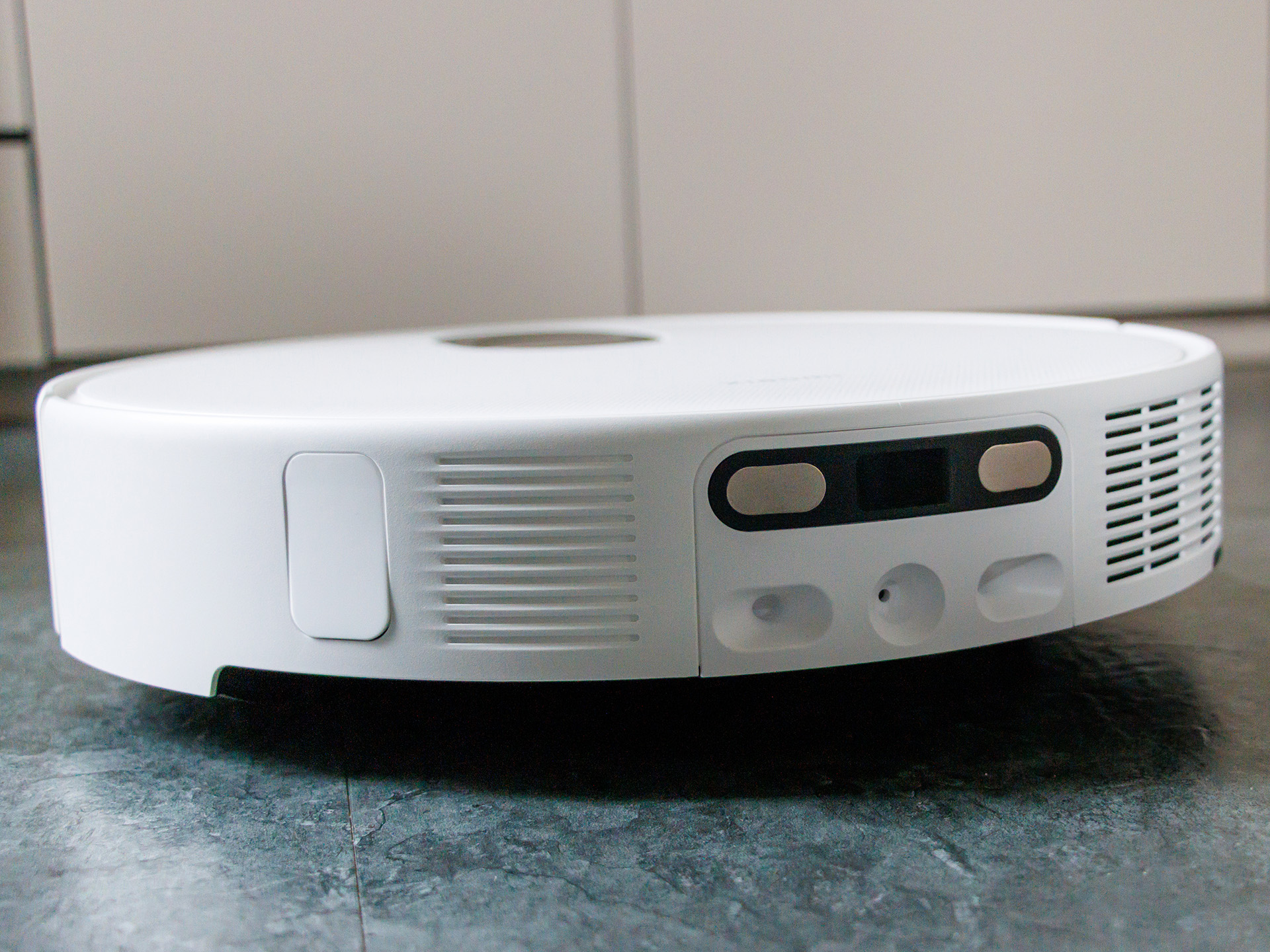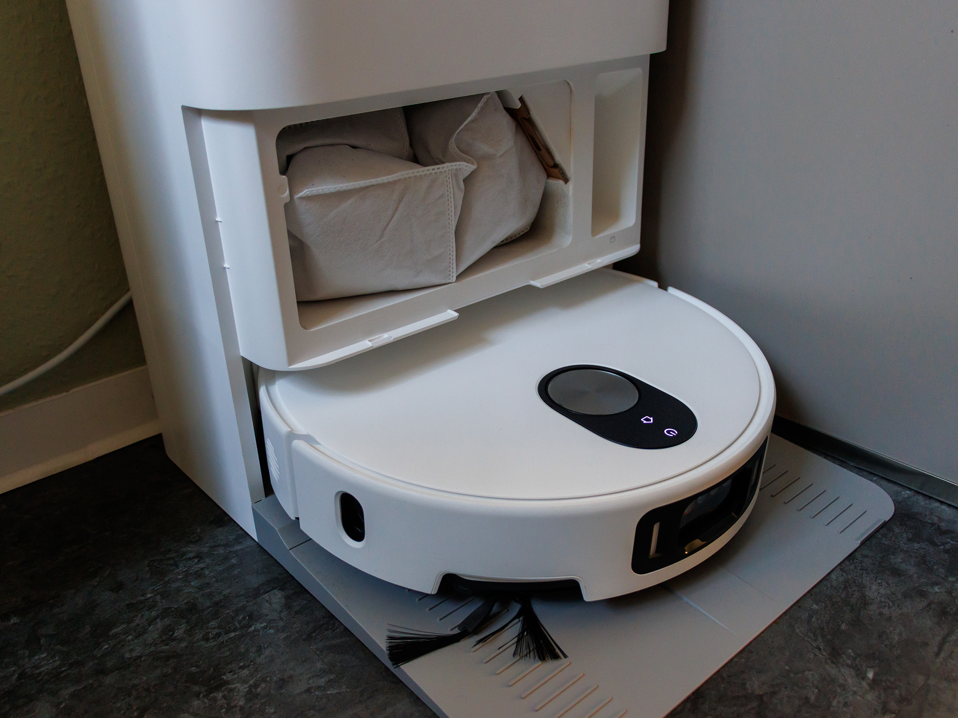 På framsidan finns en AI-trippelkamerainställning som består av RGB- och infraröda kameror plus en 3D-infraröd punktprojektor, som är utformad för att upptäcka mer än 200 objekt i realtid. Detta fungerar vanligtvis tillförlitligt i vardagen, men små legoklossar förbises ofta och till och med ett 1-pencemynt hamnade i dammsugarpåsen. Under testningen hade robotdammsugaren också problem med att upptäcka en kabel under soffan.