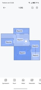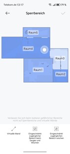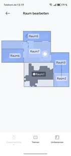 Virtuella väggar eller begränsade områden kan definieras i appen. För bättre överblick kan även möbler placeras ut eller golvbeläggningar lagras. Roboten delar självständigt upp det kartlagda området i rum, som kan slås samman eller separeras efter behov. Det är också möjligt att namnge kartorna och de enskilda rummen.