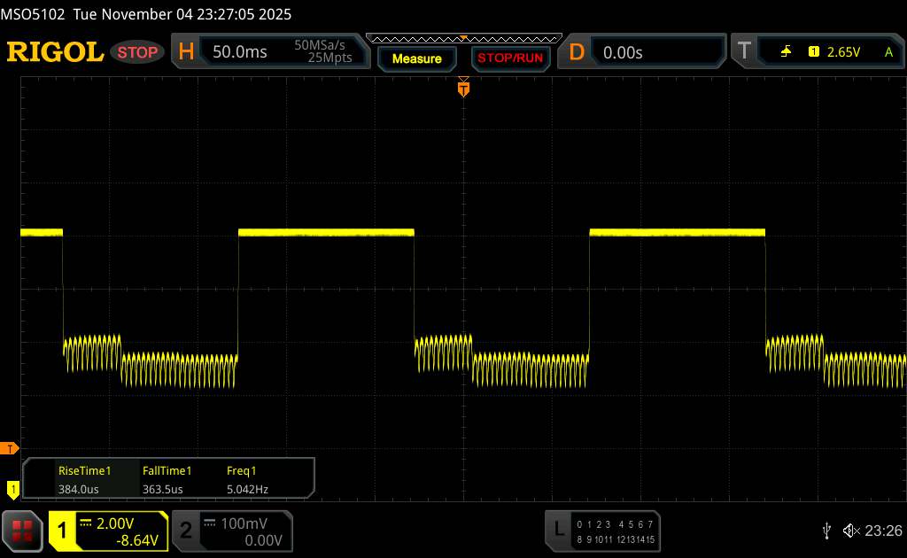 Vivo utrustar sin kompakta smartphone med PWM-dimning vid 2 160 Hz, vilket vi kunde bekräfta i våra mätningar. Dessutom uppmätte vi en basflimmerfrekvens på 360 Hz.