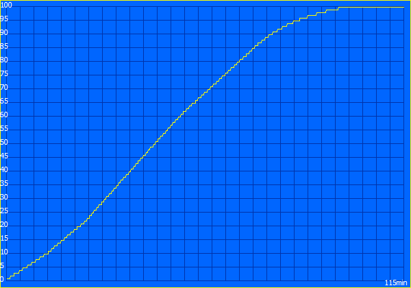 Strömförbrukningen når maximalt 65,2 W, vilket är något mer än vad 65 W-laddaren kan leverera. Eftersom strömförbrukningen snabbt sjunker riskerar enheten inte att förlora laddning under användning.