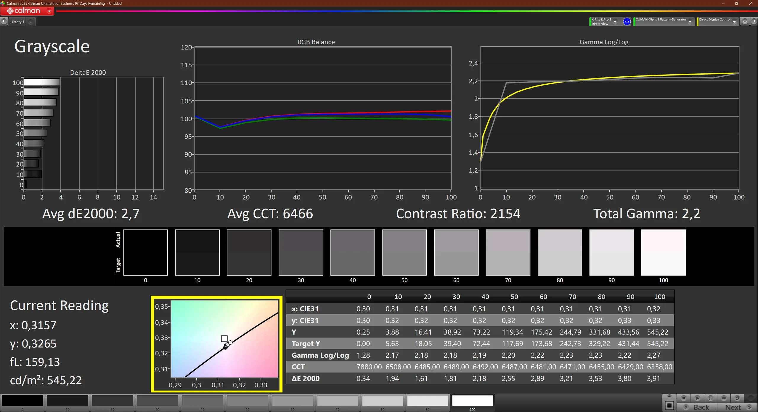 ΔE Greyscale Calman: 2.7 | ∀{0.09-98 Ø5}