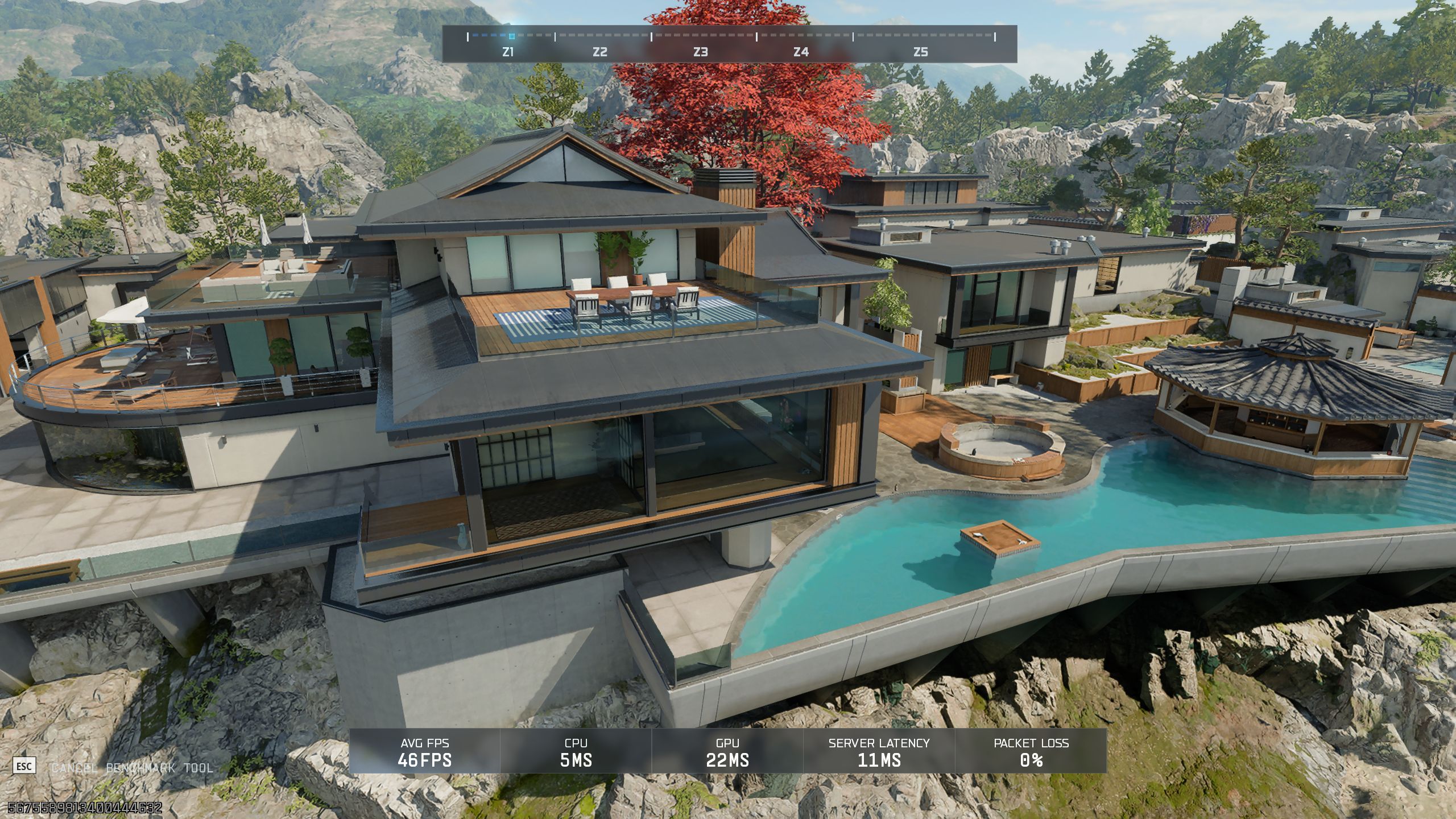 För prestandamätningar använder vi det integrerade riktmärket, som återigen oförklarligt nog bara är tillgängligt i multiplayer-läget.