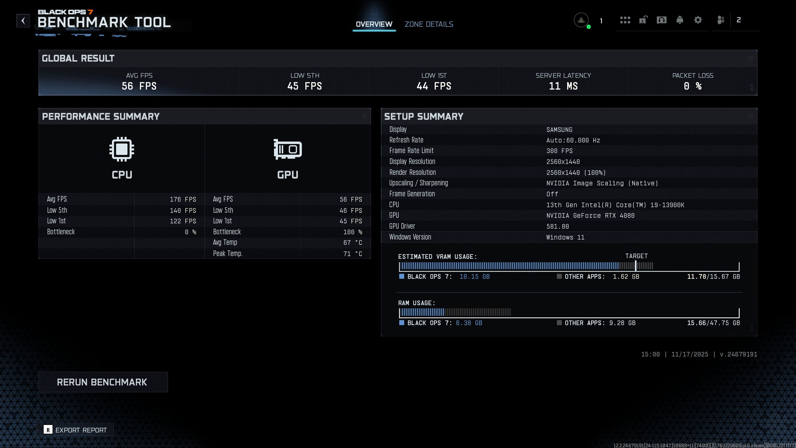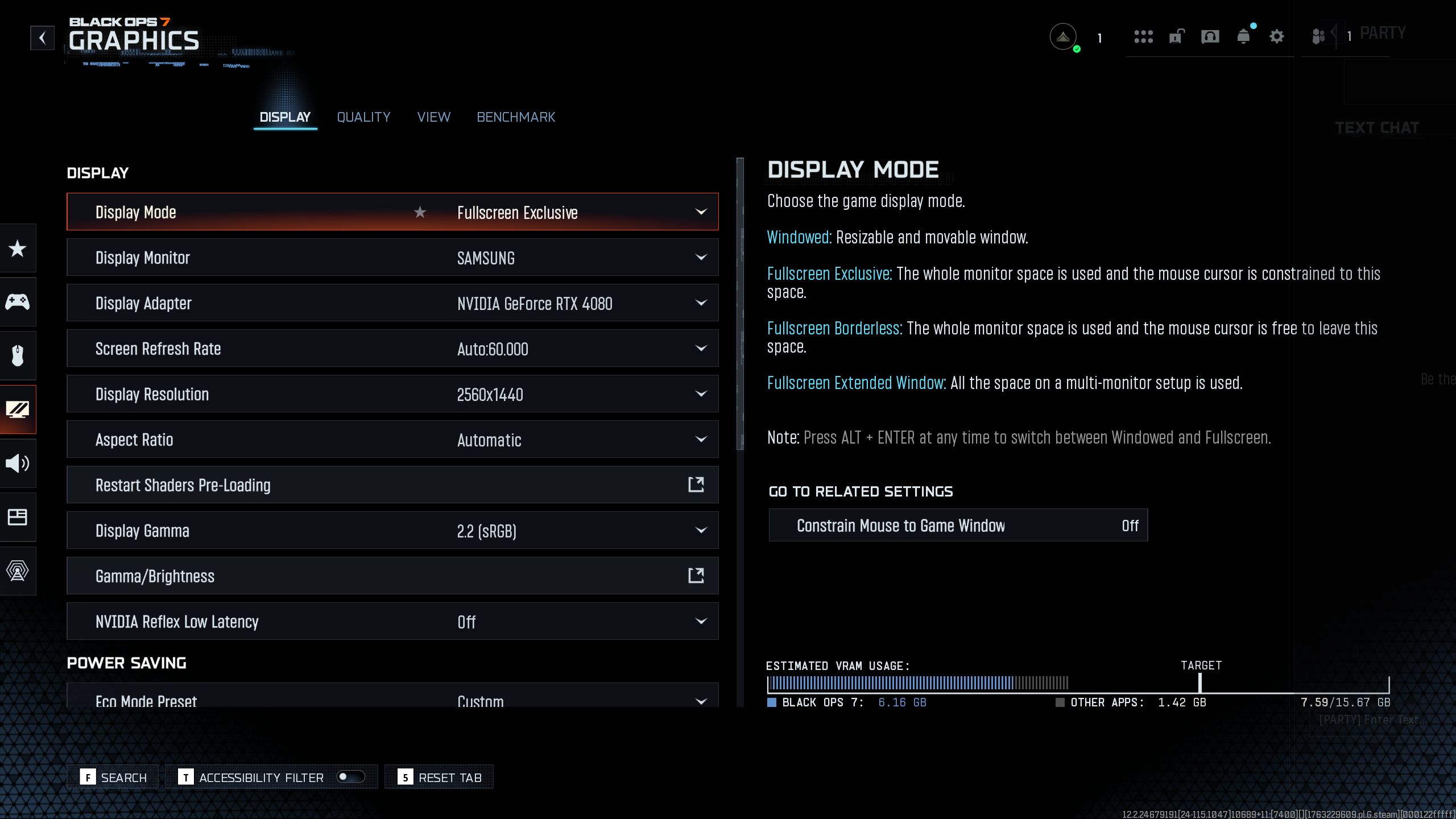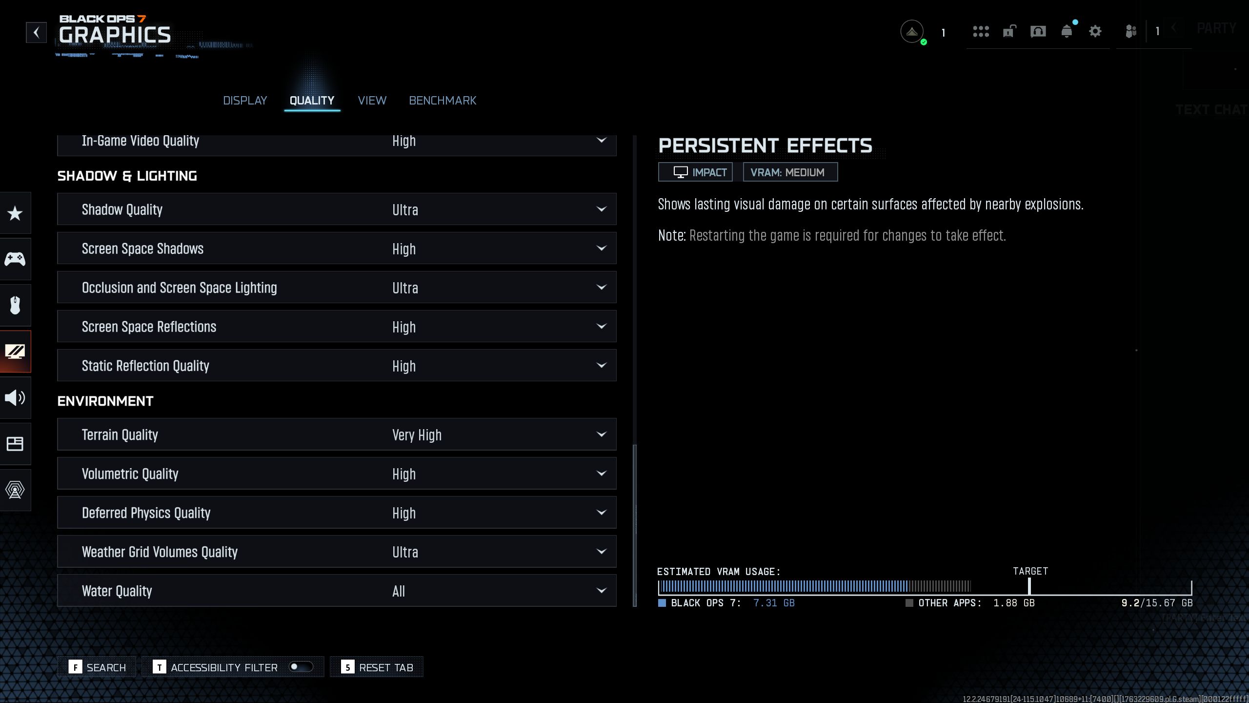 Liksom de flesta nuvarande spel är Call of Duty: Black Ops 7 ganska VRAM-hungrig utan att nå nivån på vissa Unreal Engine 5-spel (se Borderlands 4). Till exempel kräver maximala inställningar vid QHD-upplösning cirka 8 GB VRAM. Det bästa är att inställningsändringar tillämpas direkt utan omstart.