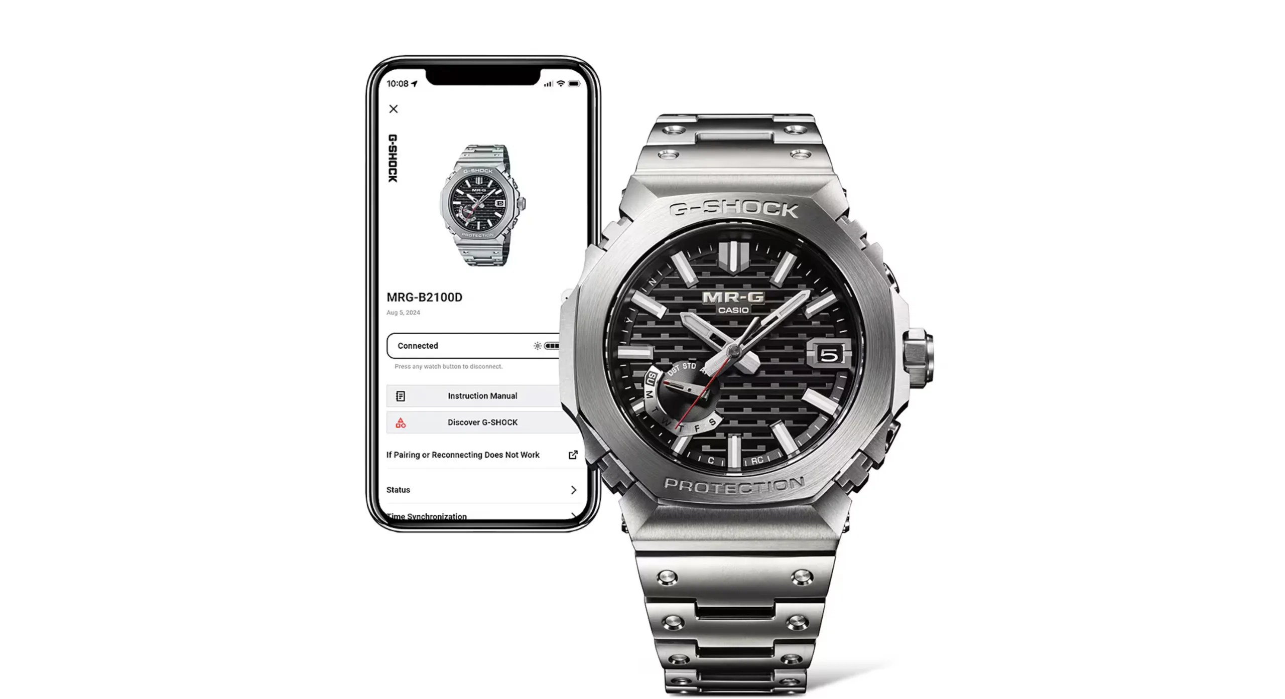 Klockan i MRG-B2100-serien har bland annat Bluetooth-anslutning för Smartphone Link och radiokontroll (Multiband 6). Klockan har tre analoga visare, en datumvisning och en dagindikator som även fungerar som lägesindikator. Denna soldrivna modell har en helautomatisk kalender och LED-bakgrundsbelysning. Dessutom är den stöt- och magnetresistenta MRGB2100D-2A vattentålig till 200 m.