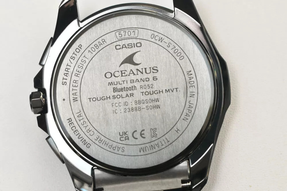 Sidoprofilbilderna visar ett relativt smalt hölje med tanke på funktionslistan, och klackens form ser ut att vara bekväm att bära. Tryckknapparna och kronan har en ren, kantig konstruktion, och kronan har en ingraverad Oceanus-symbol. På boettens baksida finns Bluetooth, Multiband 6 radiosynkronisering, Tough Solar, safirglas och 10 bars vattentålighet.