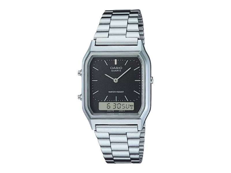 Casio har släppt klockan Vintage AQ230A-1DM i USA. Denna hybridklocka blir den fjärde i varumärkets nuvarande sortiment av AQ230A-klockor på denna marknad. Den har en liknande svart och silverfärgad design som den äldre AQ230A-1DS (för närvarande 44,95 USD på Amazon Marketplace).