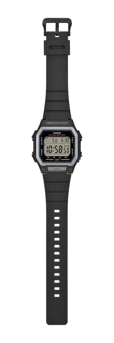 Casios W-738H har en LED-bakgrundsbelysning som gör att du kan läsa av displayen när som helst, och en helautomatisk kalender. Dess hartshölje mäter 47,0 x 42,8 x 13,5 mm (~1,85 x 1,69 x 0,53 tum). Varje version levereras med ett matchande hartsarmband, med ett kortare avstånd mellan hålen som ger en närmare passform och säkerställer att bäraren kan känna klockans vibrationer. Det är också värt att notera att modellen är vattentålig till 100 m och har en batteritid på 10 år.