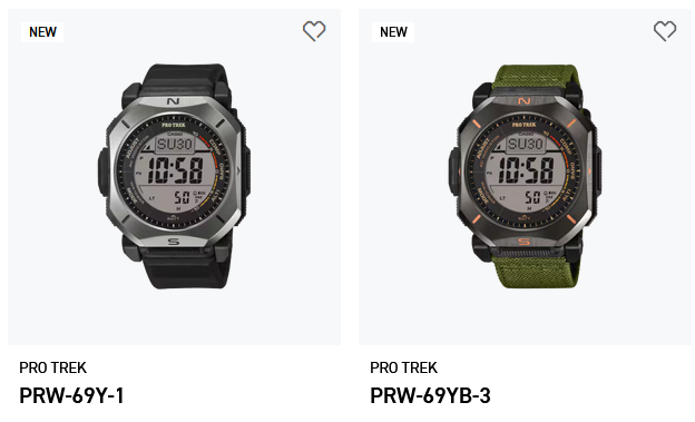 Tillsammans med den nya Casio GMC-B2100 och GMW-BZ5000 modeller har Casio också introducerat en ny Pro Trek-serie med PRW-69-serien, inklusive PRW-69Y-1 och PRW-69YB-3. Båda modellerna är planerade att släppas i april 2026 och har samma kärnhårdvara, med skillnader främst i bandmaterial och färg.
