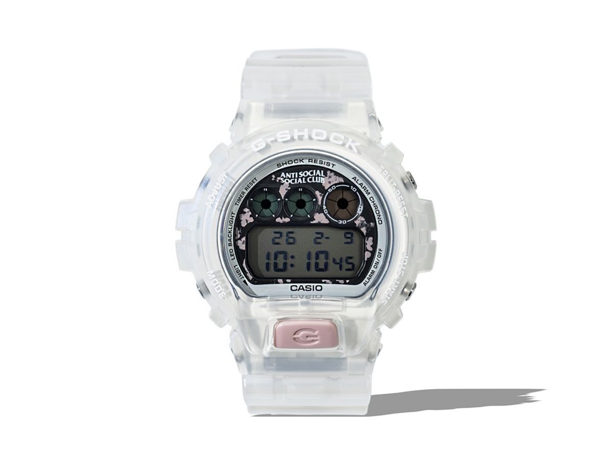 Den nya G-Shock x Anti Social Social Club DW-6900 är en skelettklocka med en genomskinlig boettring som avslöjar ett vitt hölje undertill. Denna omger en svart urtavla med ett ljusrosa körsbärsblomsmönster, med en matchande rosa "G"-knapp. Det genomskinliga armbandet är dekorerat med rosa blommor och fjärilar, märkets populära Kkotch-design. Dessutom, när användare tänder LED-bakgrundsbelysningen, visas orden "Get Weird" i bakgrunden av den större digitala displayen.