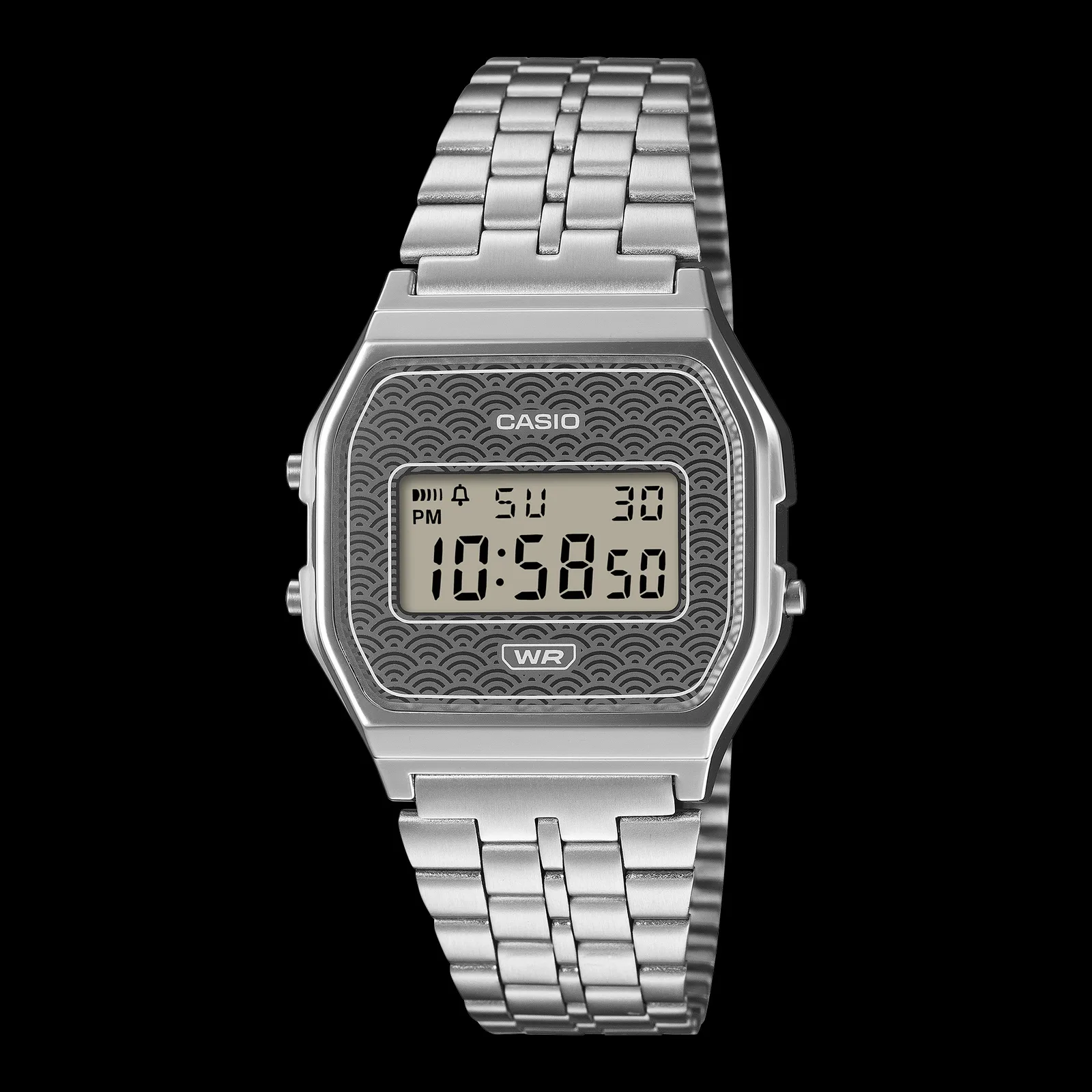 Uppdateringen är mestadels visuell. Båda modellerna har vågmotiv i Seigaiha-stil över urtavlan - ett traditionellt japanskt mönster som består av upprepade bågar. Den blå A159WEVJ-2 har en djup indigoton, medan A159WEVJ-7 kommer i en mer nedtonad silvergrå finish. Casio uppger att urtavlan använder både tryckta element och ångdeponering, vilket är anledningen till att den får ett lätt skimrande utseende.