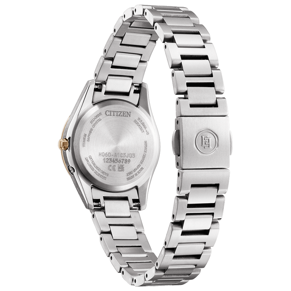 ES9375-51B är den minsta i trion med en bredd på 26,6 mm och en tjocklek på endast 7,7 mm och väger 34 gram. Den drivs av kaliber H060 och har stöd för radiomottagning i Japan, Kina, USA och Europa. Noggrannheten är beräknad till ±15 sekunder per månad när den inte tar emot någon signal. Boetten och armbandet är tillverkade av Super Titanium med Duratect Platinum och Duratect Sakura Pink ytbehandlingar - detta ger boetten en subtil körsbärston som kompletterar den ljusa silverkroppen ganska bra. Safirglas med klarhetsbeläggning sitter ovanpå, och vattentätheten är klassad till 5 bar. Priset är satt till ¥132,000 (~$846).