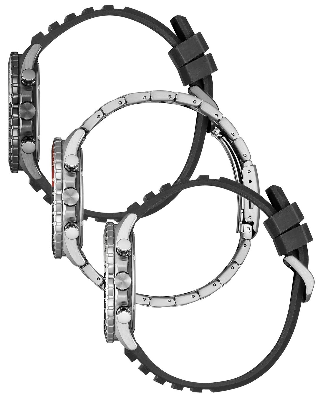 Designkonfigurationerna varierar mellan de tre referenserna. AT2565-05E har en svartpläterad boett i rostfritt stål med gröntonade subdialrar och levereras på ett svart gummiband med textur. AT2566-88E har en silverfärgad standardfinish med en tvåfärgad röd och svart bezelinsats och ett armband i rostfritt stål med flera länkar, vilket resulterar i en totalvikt på 153 g. Slutligen är AT2569-04L utrustad med en blå urtavla med en svart och silverfärgad bezelinsats, även den med ett svart gummiband. Medan vattentätheten på 10 bar gör dessa modeller lämpliga för måttliga vattenaktiviteter, kommer valet av mineralkristall framför safir i denna prisklass att vara en stor mekanisk kompromiss för konsumenter som föredrar slagtålighet framför repförebyggande.