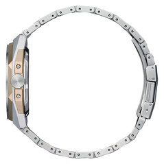 Efter det första tillkännagivandet av den nedskalade Series 8-kollektionen i Japan har Citizen Europe bekräftat en fjärde variant (med tillstånd av @plus9time rapportering), NB6084-50A. Denna nya modell ansluter sig till de pistagegröna, gulgula och smidda kolreferenserna som tidigare täckts. Detta fullbordar effektivt den första globala lanseringen av 39,3 mm-arkitekturen. NB6084-50A har ett tvåfärgat utförande. Den har en boett i borstat rostfritt stål med gulguldfärgad plätering på boetten och armbandets mittlänkar. Precis som sina motsvarigheter är boetten endast 10,4 mm tjock.